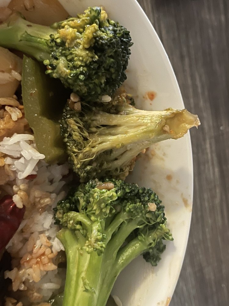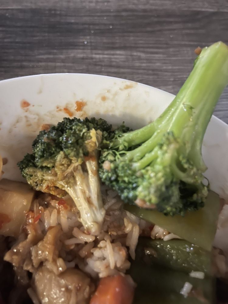 Sautéed broccoli and fried tofu in a savory garlic sauce.